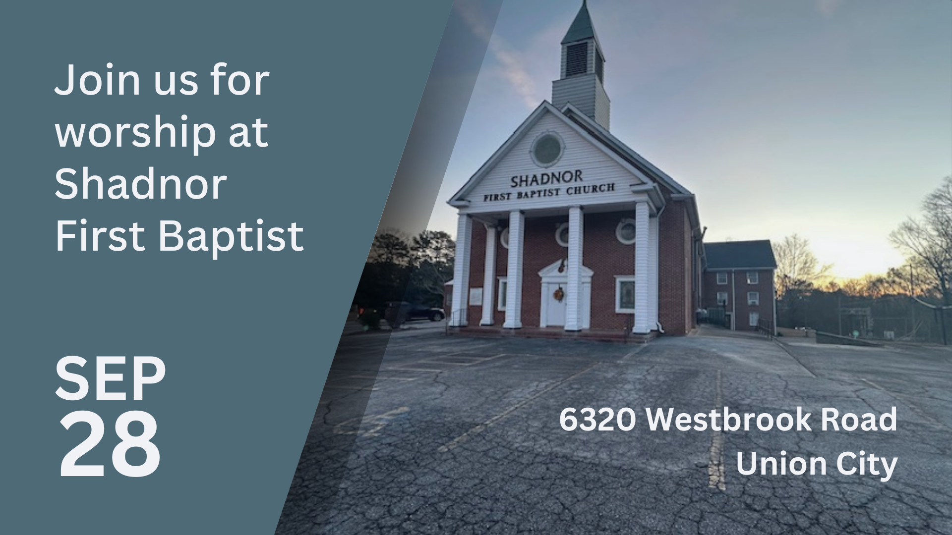 Join us for worship at Shadnor First Baptist Church (6320 Westbrook Rd, Union City, GA)!