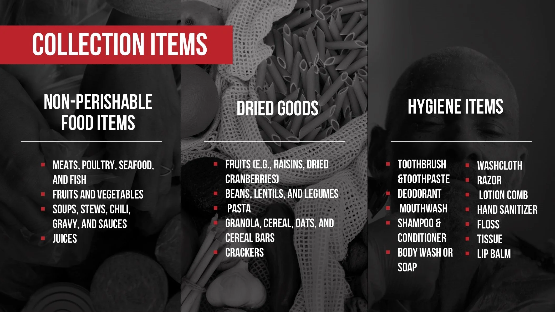 As part of the Give Love Away project, we are partnering with Love Beyond Walls to provide hygiene resources for the families and individuals they are serving. We invite you to join us in collecting items over the next few weeks - see below for the list of needed items. (While all donations are welcome, we would love our Bridge family to focus specifically on hygiene items to bless this organization.) We will have designated donation boxes on Sunday mornings through March 16th to receive your donations, and we will have a Serve Day on March 22nd.